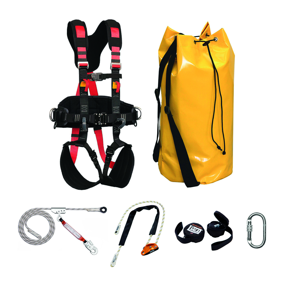 Innehåller sele P-81, förvaringsväska, karbin, lina med falldämpare (10m), grillon samt suspension trauma relief